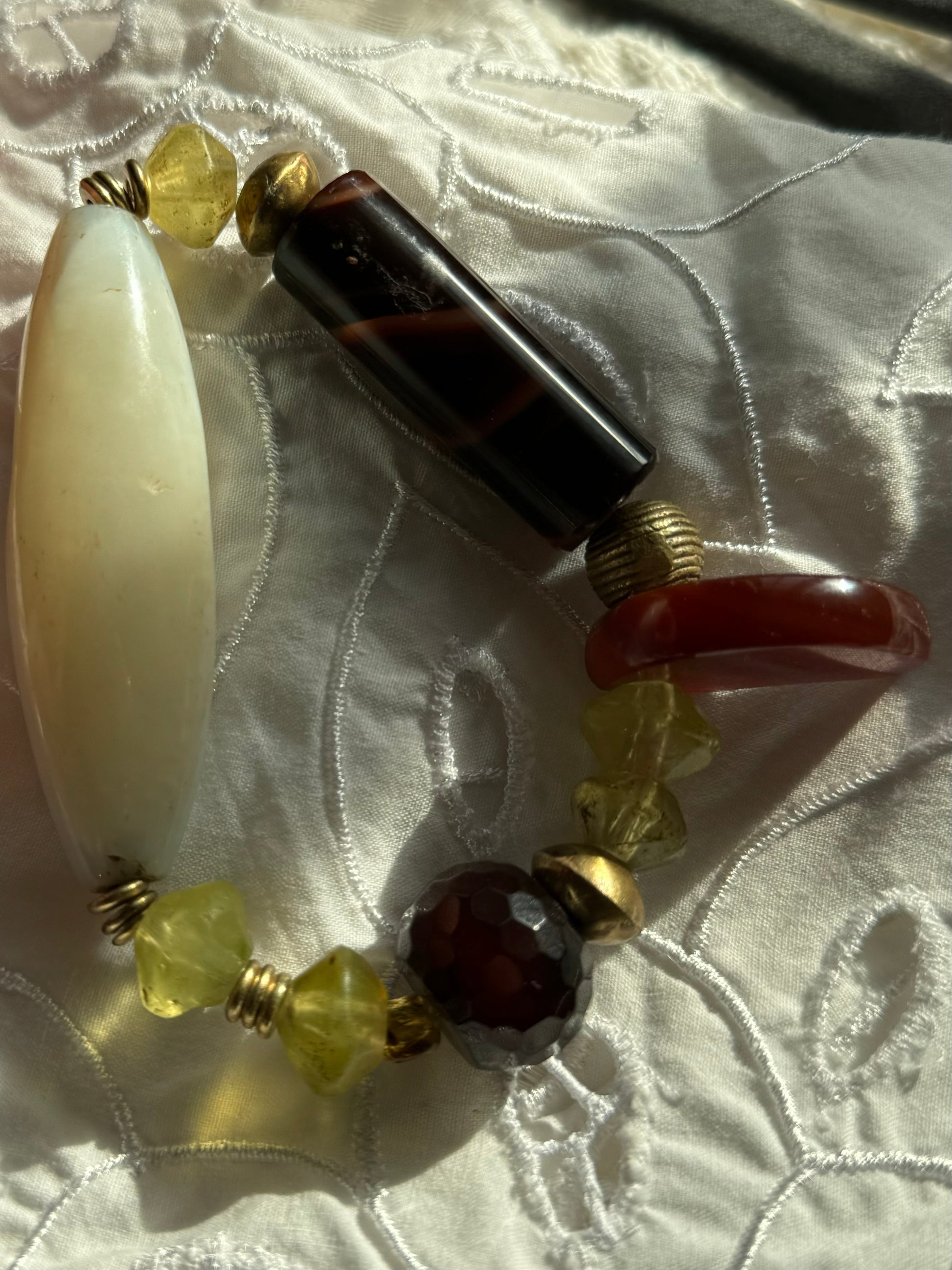 Super large white agate bead, yellow vaseline beads, carnelian claw bead faceted carnelian bead, brass beads Ethiopia and Cameroun, large carnelian bar bead